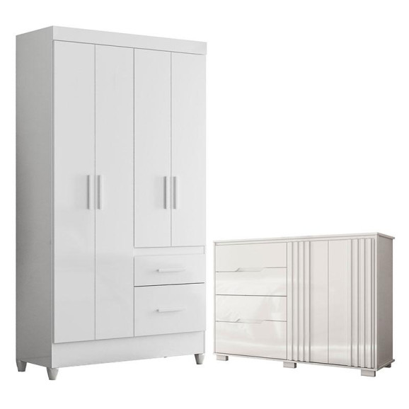 Guarda Roupa Solteiro Madri Flex e Cômoda Texas Branco Brilho – Moval