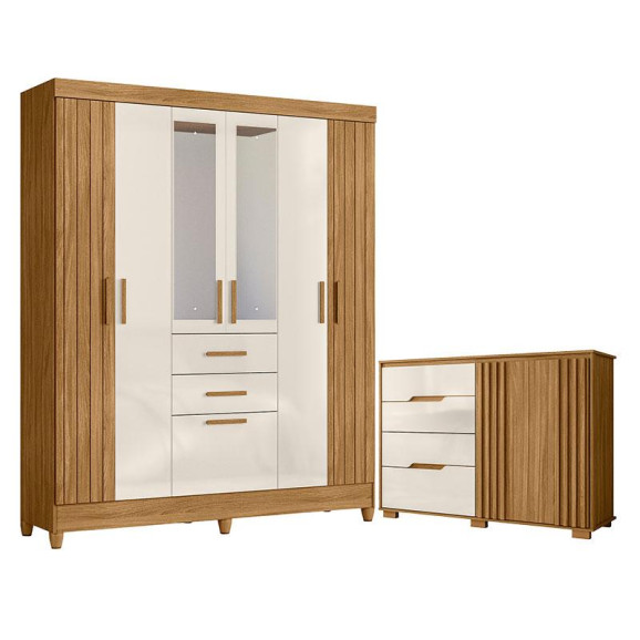 Guarda Roupa Solteiro Malta com Espelho e Cômoda Texas Freijó Off White – Moval