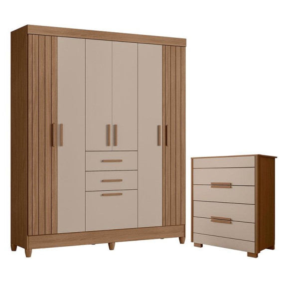 Guarda Roupa Solteiro Malta e Cômoda Dhara Carvalho Fendi – Moval
