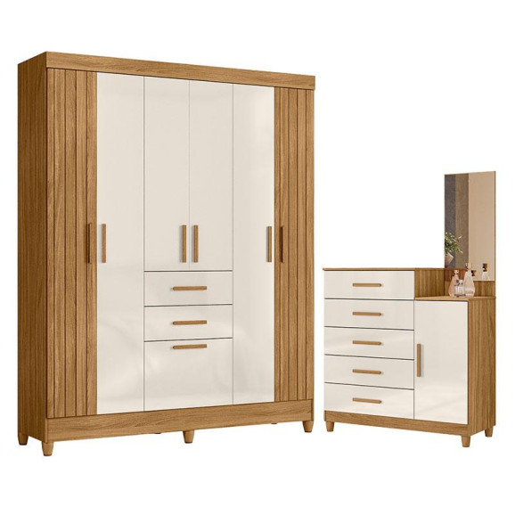 Guarda Roupa Solteiro Malta e Cômoda Lisboa Freijó Off White – Moval