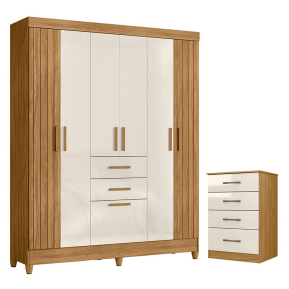 Guarda Roupa Solteiro Malta e Cômoda MS913 Freijó Off White – Moval