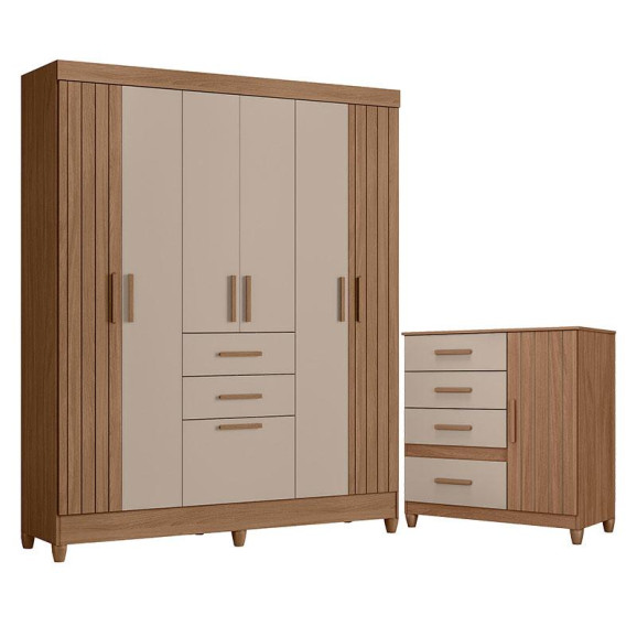 Guarda Roupa Solteiro Malta e Cômoda Vênus com Pés Carvalho Fendi – Moval