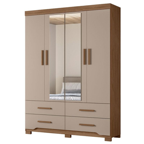 Guarda Roupa Solteiro Miami 4 Portas Carvalho Fendi com Espelho - Moval