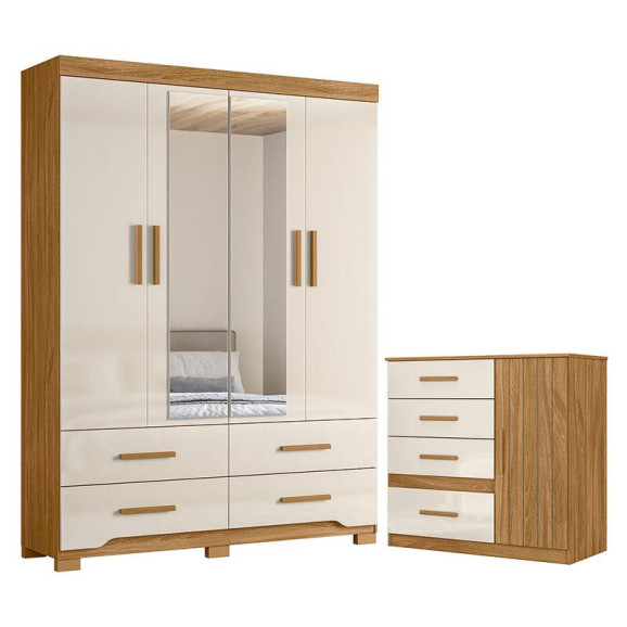 Organize seu quarto com elegância e o melhor custo benefício do mercado. Apresentamos o Guarda Roupa Solteiro Miami e Cômoda Vênus fabricados pela Moval. Guarda Roupa com 04 portas e 04 gavetas com corrediças telescópicas, espelhos inclusos, puxadores em MDF, cabideiro em alumínio para melhor organização interna, detalhes usinados nas gavetas, espaço ideal para roupas longas e pés em PVC. A cômoda possui 04 gavetas com corrediças metálicas, 01 porta, detalhe frisado e puxadores em MDF. Fabricado com materiais de alta qualidade que garante resistência e durabilidade ao produto. Confira mais detalhes e aproveite!