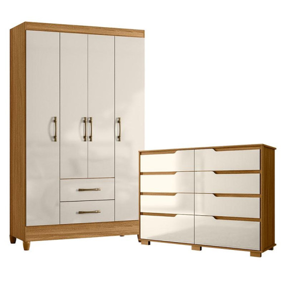 Organize seu quarto com elegância e o melhor custo benefício do mercado. Apresentamos o Guarda Roupa Solteiro Paraty e Cômoda Georgia fabricados pela Moval. Guarda Roupa com 04 portas e 02 gavetas com corrediças metálicas, puxadores na cor bronze, cabideiro para melhor organização interna, espaço ideal para roupas longas e pés em PVC. A cômoda possui 08 gavetas com corrediças telescópicas, puxadores usinados, pés em PVC e um design moderno que combina com qualquer decoração. Fabricado com materiais de alta qualidade que garante resistência e durabilidade ao produto. Confira mais detalhes e aproveite!