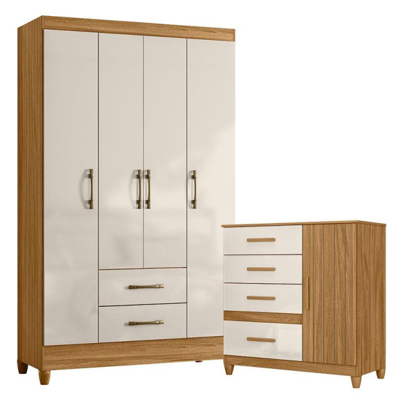 Organize seu quarto com elegância e o melhor custo benefício do mercado. Apresentamos o Guarda Roupa Solteiro Paraty e Cômoda Vênus fabricados pela Moval. Guarda Roupa com 04 portas e 02 gavetas com corrediças metálicas, puxadores na cor bronze, cabideiro para melhor organização interna, espaço ideal para roupas longas e pés em PVC. A cômoda possui 04 gavetas com corrediças metálicas, 01 porta, puxadores em MDF, pés em PVC e um design moderno que combina com qualquer decoração. Fabricado com materiais de alta qualidade que garante resistência e durabilidade ao produto. Confira mais detalhes e aproveite!