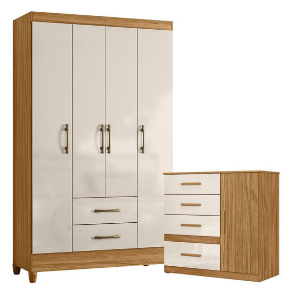 Organize seu quarto com elegância e o melhor custo benefício do mercado. Apresentamos o Guarda Roupa Solteiro Paraty e Cômoda Vênus fabricados pela Moval. Guarda Roupa com 04 portas e 02 gavetas com corrediças metálicas, puxadores na cor bronze, cabideiro para melhor organização interna, espaço ideal para roupas longas e pés em PVC. A cômoda possui 04 gavetas com corrediças metálicas, 01 porta, puxadores em MDF e um design moderno que combina com qualquer decoração. Fabricado com materiais de alta qualidade que garante resistência e durabilidade ao produto. Confira mais detalhes e aproveite!