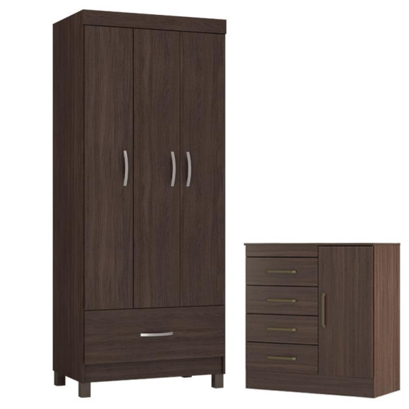 Guarda Roupa Solteiro Prince com Cômoda Montevidéu Café Touch - Demóbile
