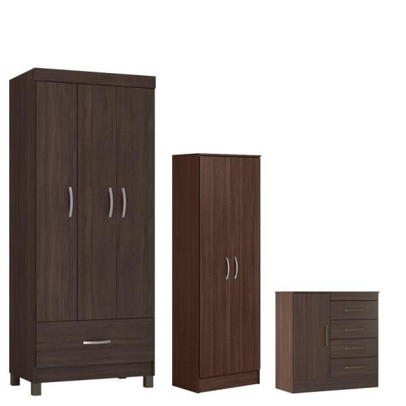 Guarda Roupa Solteiro Prince com Multiuso Golden com Cômoda Montividéu Café - Demóbile