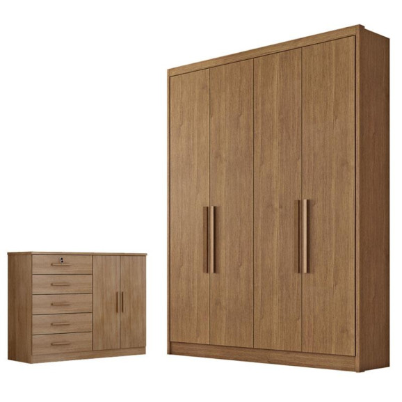 Procurando móveis para seu quarto? Aqui você encontra a combinação ideal para que seu quarto fique mais bonito e elegante! Apresentamos para você este belo conjunto composto pelo guarda roupa da linha Sevilhae a cômoda Seul. O guarda roupa com design moderno possui amplo espaço interno, varias repartições, prateleiras, gavetas. A cômoda conta com 4 gavetas equipadas com corrediças telescópicas e uma porta ganhando um espaço extra. Não perca mais tempo venha aproveitar e garantir já o seu!