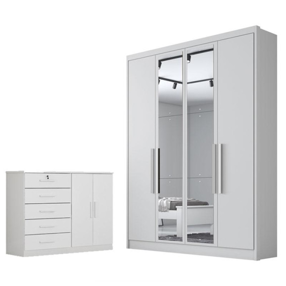 Procurando móveis para seu quarto? Aqui você encontra a combinação ideal para que seu quarto fique mais bonito e elegante! Apresentamos para você este belo conjunto composto pelo guarda roupa da linha Sevilhae a cômoda Seul. O guarda roupa com design moderno possui amplo espaço interno, varias repartições, prateleiras, gavetas. A cômoda conta com 4 gavetas equipadas com corrediças telescópicas e uma porta ganhando um espaço extra. Não perca mais tempo venha aproveitar e garantir já o seu!