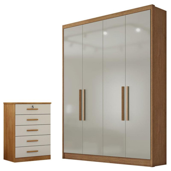 Procurando móveis para que seu quarto fique mais bonito e funcional? Aqui você encontra a opção ideal e com muita qualidade. O conjunto composto pelo guarda roupa da linha Sevilha possui várias repartições, gavetas, prateleiras, cabideiros garantindo mais organização para suas roupas e pertences. O gaveteiro da linha Suiça proporciona espaço extra possui 5 gavetas equipadas com corrediças telescópicas trazendo suavidade ao abrir e fechar. Venha conferir e garantir o seu!