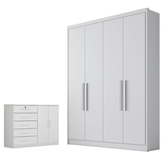 Procurando móveis para seu quarto? Aqui você encontra a combinação ideal para que seu quarto fique mais bonito e elegante! Apresentamos para você este belo conjunto composto pelo guarda roupa da linha Sevilhae a cômoda Seul. O guarda roupa com design moderno possui amplo espaço interno, varias repartições, prateleiras, gavetas. A cômoda conta com 4 gavetas equipadas com corrediças telescópicas e uma porta ganhando um espaço extra. Não perca mais tempo venha aproveitar e garantir já o seu!