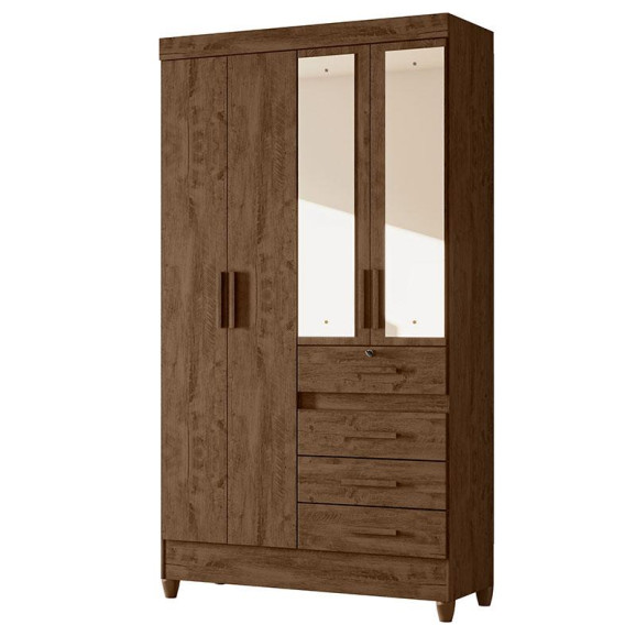 Guarda Roupa Solteiro Sobral 4 Portas Castanho Wood com Espelho - Moval