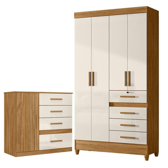 Está querendo renovar seu quarto com o melhor custo benefício do mercado. Apresentamos o Guarda Roupa Solteiro Sobral e Cômoda Vênus fabricados pela Moval. Guarda Roupa possui 04 portas, 04 gavetas sendo a primeira com fechadura e chave ideal para guardar itens pessoais com segurança, corrediças metálicas, puxadores em MDF, cabideiros em alumínio para melhor organização interna e pés em PVC. A cômoda possui 04 gavetas com corrediças metálicas, 01 porta com detalhes frisados e puxadores em MDF. Fabricado com materiais de alta qualidade que garante resistência e durabilidade ao produto. Confira mais detalhes e aproveite!
