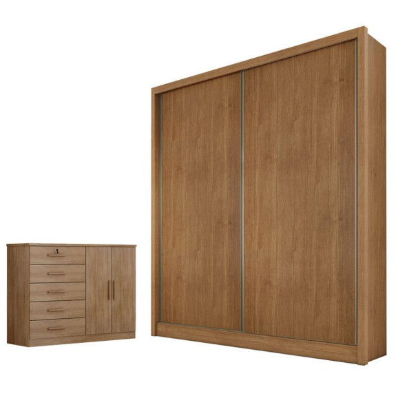 Guarda Roupa Solteiro Toledo e Cômoda Seul Cumaru 23 - Novo Horizonte