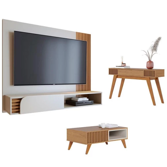 Home Suspenso Jurerê 1.6 Off White Matte Freijó com Mesa de Centro Jeri Freijó Off White e Aparador Riviera Freijó - Colibri