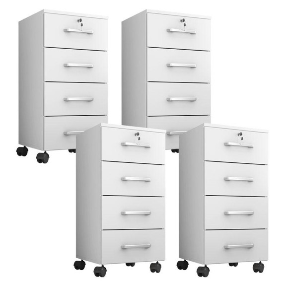 Kit 4 Gaveteiros para Escritório Gávea com Chave Branco Fosco – Móveis Leão