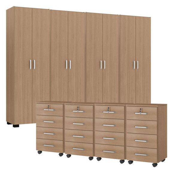 Kit 4 Gaveteiros para Escritório Gávea com Chave e 4 Livreiros Office Portas Grandes Freijó Fosco – Móveis Leão
