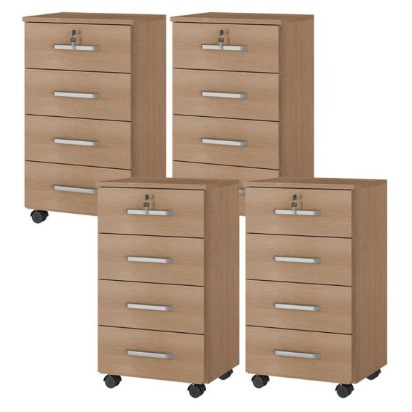 Kit 4 Gaveteiros para Escritório Gávea com Chave Freijó Fosco – Móveis Leão