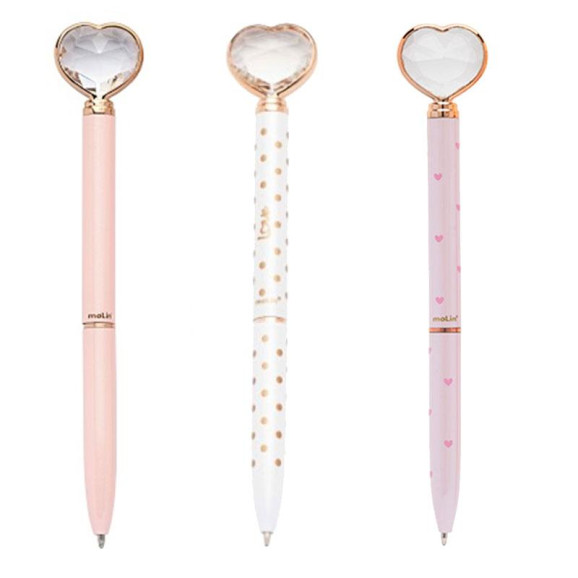 Kit Caneta Esferográfica Coração de Diamante 3 Unidades - Molin