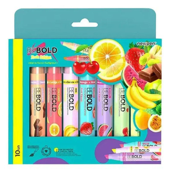Kit Marca Texto Bebold Fruit Edition com Cheirinho 10 Cores - Newpen