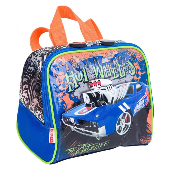A lancheira Hot Wheels 16Z esta tunada com muita diversao! Essa lancheira possui painel frontal em PVC, alca carona - podendo ser acoplada a sua mochila de rodinhas, ziper com puxador personalizado, acompanha garrafa e potinho e e produzida em nylon - material de alta resistencia e facil limpeza.
