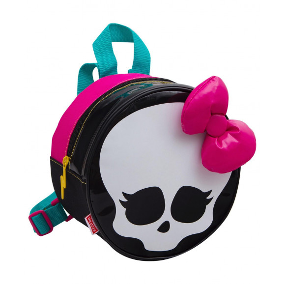 Lancheira Monster High Skulette 63586 possui alca de costas regulavel e alca de mao. A estampa frontal da Skulette conta com laco rosa 3D com espuma. O fechamento principal e em ziper com puxador personalizado. O forro interno e de facil limpeza e mantem a salvo os alimentos das variacoes de temperatura. Atras. conta com etiqueta de identificacao da crianca. Acompanha potinho e garrafinha tipo squeeze Monster High. Confeccionada em Poliester.