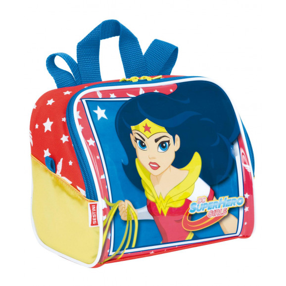 A Lancheira Grande Super Hero Girls 17Y agora com o super poder das meninas que vai lhe acompanhar na escola. Produzida em sua grande parte de Poliester e seu painel frontal em PVC, material brilhante e facil de limpar. Bolso com fechamento por ziper com puxador de metal personalizado, alem disso, sistema de alca carona podendo ser acoplada mochilete e identificador no verso para colocar seu nome. Este modelo acompanha Potinho e Garrafinha.