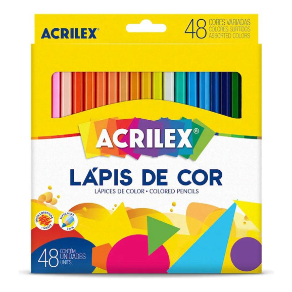 Agora seus trabalhos ganham vida com cor, suavidade e precisão! O Lápis de Cor Sextavado 9648 da Acrilex, possui 48 cores vivas e intensas, ponta resistente e formato sextavado para maior conforto, não perca mais tempo e aproveite!