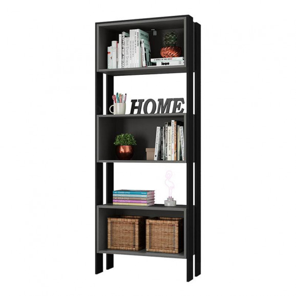 Livreiro com Nichos 3440 Preto Chumbo - Qmovi