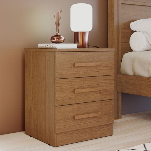 Precisando de móveis para seu quarto? Apresentamos a mesa de cabeceira da linha Milão desenvolvida pela Novo Horizonte com materiais de excelente qualidade em MDP/MDF garantindo durabilidade e resistência. Possui 3 gavetas equipadas com corrediças telescópicas garantindo suavidade ao manusear, e oferecendo espaço extra para guardar acessórios e objetos, venha garantir já o seu!