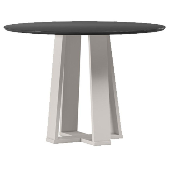Mesa de Jantar 100x100 cm Isabela com Vidro Off White Preto– New Ceval