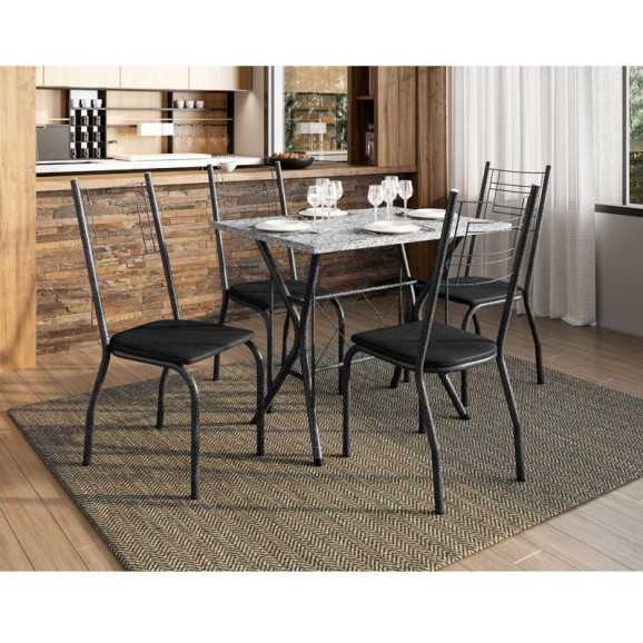Mesa de Jantar Bruna 100x60 cm com Granito Ocre Itabira com 4 Cadeiras 063 Preto – Artefamol
