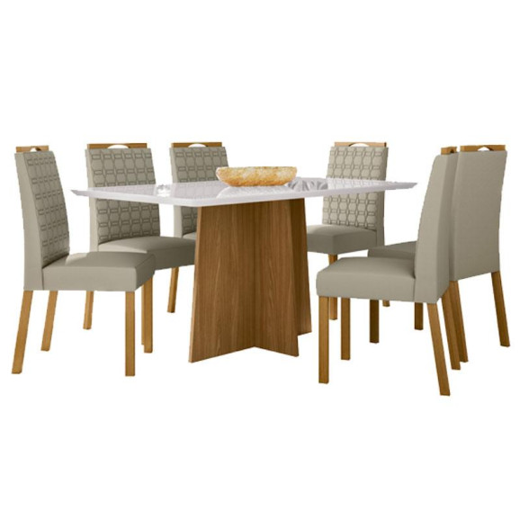 Esta montando sua sala de jantar ou cozinha? Nós temos a opção certa para que seu ambiente fique ainda mais bonito com toque refinado e mais funcional para o dia a dia.Apresentamos a mesa da linha Anitta e as cadeiras da linha Mariana. Um design moderno e sofisticado. Ideal para espaços maiores, acomoda confortavelmente até 6 pessoas. A mesa é desenvolvida em MDF, seu tampo possui aplicação de vidro adicionando elegância. As cadeiras são resistentes produzidas em madeira e macias, possuem espuma D 18 e revestimento com tecido de excelente qualidade com detalhes bordados. Não perca mais tempo a hora é agora deixe seu ambiente acolher e inovado venha adquirir já o seu!