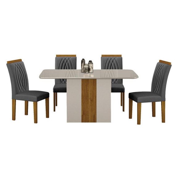 Mesa de Jantar Doha 120x80 Off White Decor Off com 4 Cadeiras Freijó Joli Chumbo – Leifer Móveis