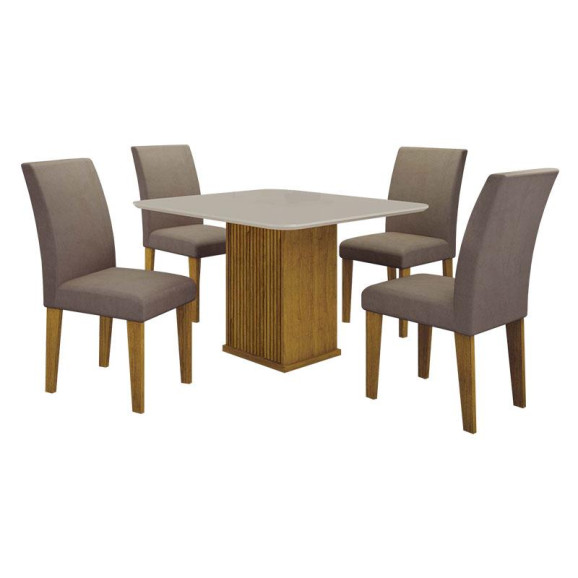 Mesa de Jantar Napoli 90x90 Freijó Decor Off White com 4 Cadeiras MDF Freijó Joli Camurça – Leifer Móveis