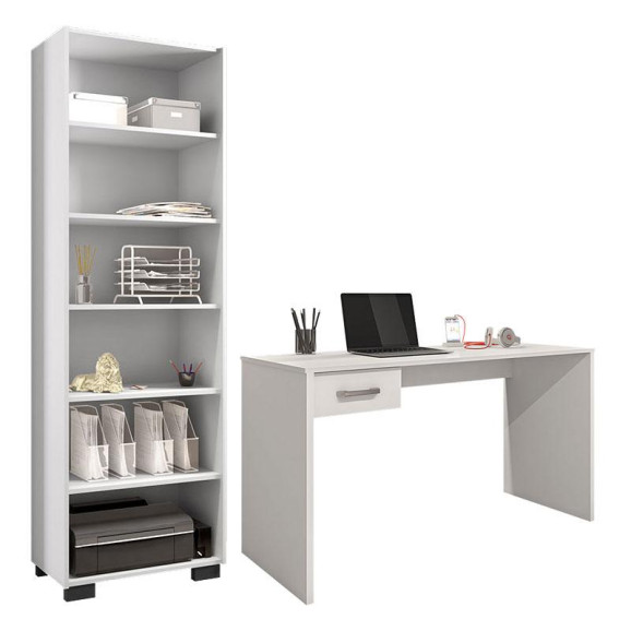 Mesa para Computador Gávea com Gaveta e Livreiro Office Branco Trama - Móveis Leão
