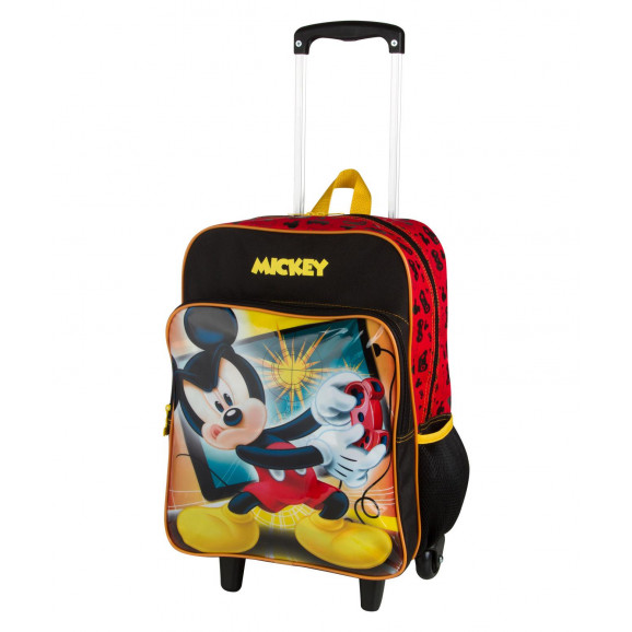 A Mochila de Rodinhas Grande Mickey 17M Plus no game tambem? O Mickey sera seu companheiro nesta nova fase. Essa mochila de rodinhas possui carrinho em aluminio que facilita o transporte devido ao menor peso, e produzida em poliester, material muito resistente e em PVC, que facilita a limpeza do produto. Possui bolso frontal com puxador de ziper personalizado, bolsos laterais em redinha com elastico para deixar seus itens prediletos sempre a mao e identificador no verso.
