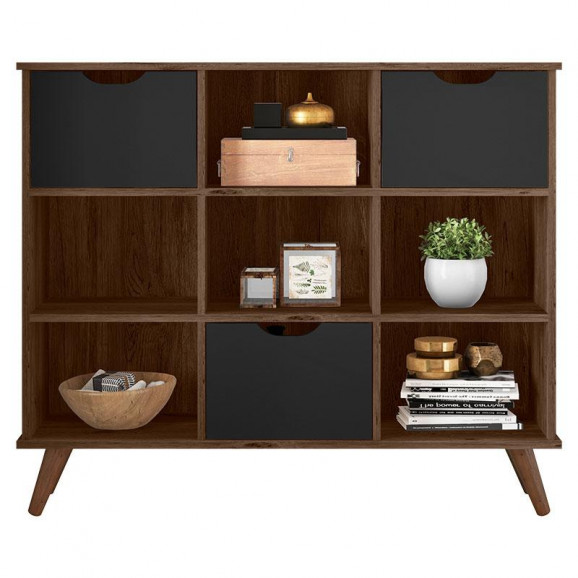 Nicho Organizador Retrô 3 Gavetas Ébano Rústico Preto - Qmovi