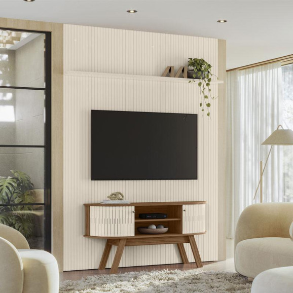 Painel Piso Teto New Interlagos com Bancada Atlanta New Silverstone Ambiente Naturale Off White- Madetec