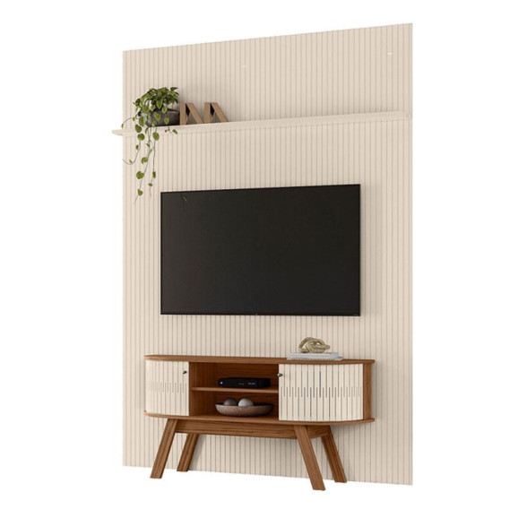 Apresentamos estes Painel Piso Teto New Interlagos com Bancada Atlanta New Silverstone na cor Naturale Off White painel desenvolvido em MDF frisado com baixo relevo com portas flexíveis em MDF com tampo e base com detalhes curvos,Bancada desenvolvida com portas flexíveis em MDF com tampo e base com detalhes curvos, puxadores em poliestireno, com pés retrô e estrutura em MDP de 15 e 25mm. Desenvolvidos pela Madetec com toda qualidade e modernidade adquire o seu.