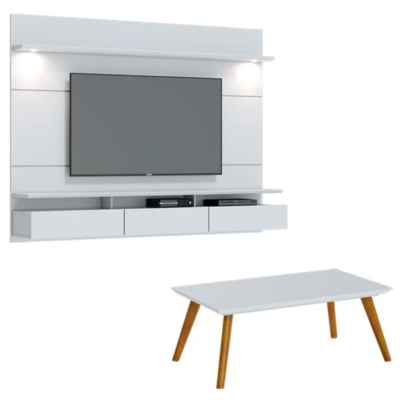 Painel Suspenso Decore 1.8 com Mesa de Centro Classic Branco Acetinado - Imcal