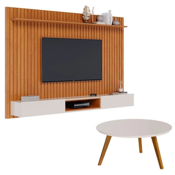 Painel Suspenso Loft 2.2 com Mesa de Centro Classic Redonda Nature Off White - Imcal
