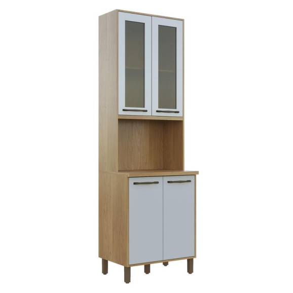 Paneleiro com Nicho e 2 Portas de Vidro Áustria Cinamomo Off White - Valdemóveis