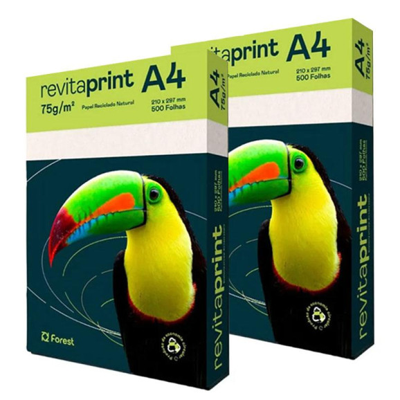 Papel Sulfite A4 75g 500 Folhas Reciclado Natural 2 Unidades - Revita Print