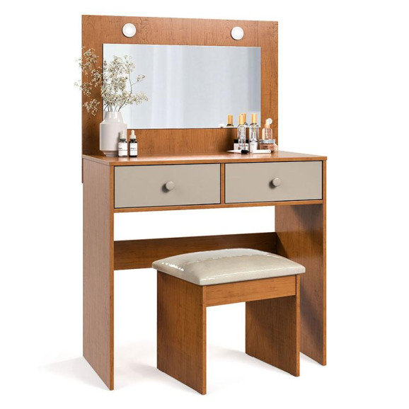 Penteadeira Camarim e Banqueta Maia com Almofada Freijó Mani – Luapa Móveis