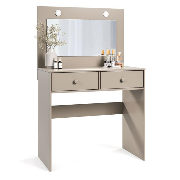 A Penteadeira Camarim Maia foi desenvolvida para tornar seu autocuidado ainda mais especial, sendo um móvel ideal para quem busca praticidade, elegância e sofisticação, inclui uma banqueta que complementa perfeitamente o conjunto. A penteadeira possui 02 gavetas sendo 01 com nicho porta jóias com corrediças telescópicas, 02 leds integrados garantindo uma iluminação perfeita para maquiagem e cuidados diários, acompanha espelho, MDP 12mm no quadro e lateral de gavetas, restante todo 15mm e sapatas de plástico nas laterais para não ficar direto no chão. A banqueta tem seu design minimalista, com estrutura em madeira de acabamento impecável, pensada para valorizar ambientes com naturalidade e delicadeza. Compre agora sua Penteadeira Camarim e Banqueta Maia fabricados pela Luapa Móveis e viva a experiência de se cuidar com estilo todos os dias!