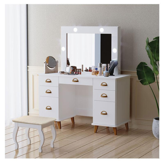 Penteadeira Camarim New Seul com Banqueta Almofadada Ambiente Branco - Luapa