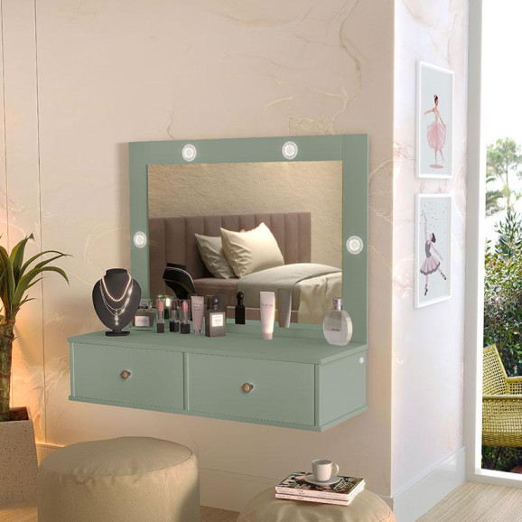 A Penteadeira Suspensa Isis fabricada pela Luapa Móveis é perfeita para quem busca funcionalidade sem abrir mão do estilo, seu formato suspenso oferece leveza visual ao ambiente, além de permitir uma melhor utilização da área inferior, perfeita para cadeiras, puffs ou organização extra. A penteadeira possui 02 gavetas sendo 01 com nicho e corrediças telescópicas, 04 leds integrados garantindo uma iluminação perfeita para maquiagem e cuidados diários, acompanha espelho, MDP 12mm nas laterais das gavetas, restante todo 15mm e 02 réguas para fixar na parede. A Penteadeira Suspensa Isis é perfeita para valorizar seus momentos de autocuidado com muito estilo, aproveite!